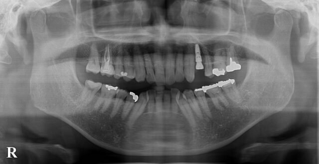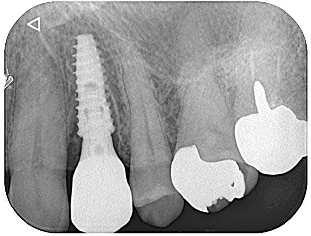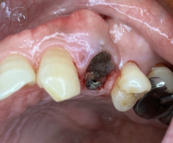 1回法で処置することで1回の外科処置で短期間で補綴を入れることができた。