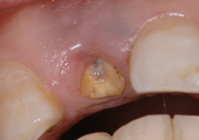 抜歯と同時にインプラントを埋入し、短期間で治療を終了した。