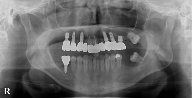 上の前歯等、将来的にインプラントの追加が必要になると思われる。
